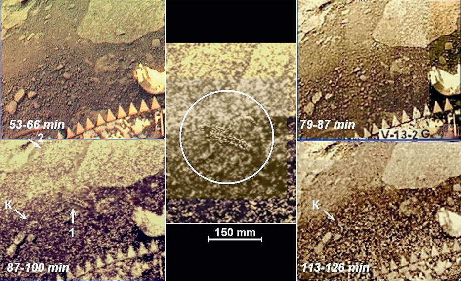 In 2012, Ksanfomaliti published an analysis in the journal Solar System Research based on Venera-13’s images. He argued that several objects visible in the photos might represent living organisms. He focused on three shapes: