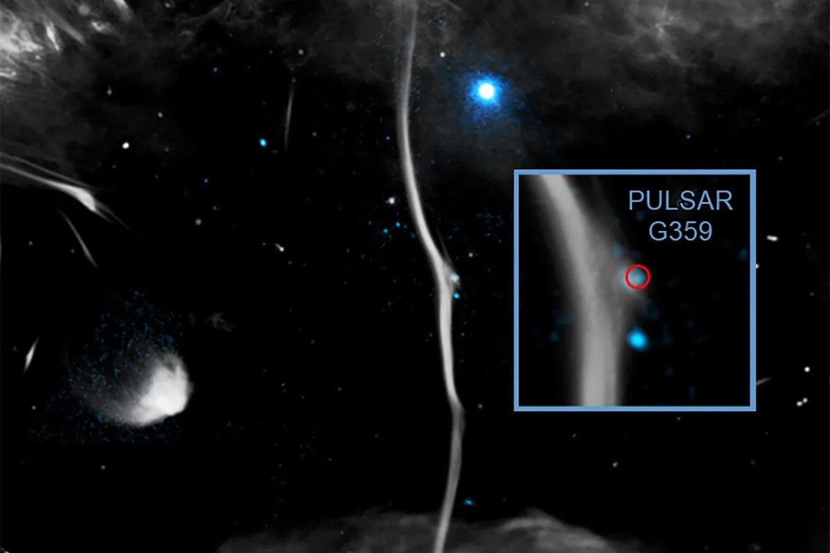 If the supernova blast is uneven, the newborn pulsar can be launched through space at extreme speed — over 3 million kilometers per hour. That is the story of G359, a stellar core fired like a bullet through the center of the Milky Way.